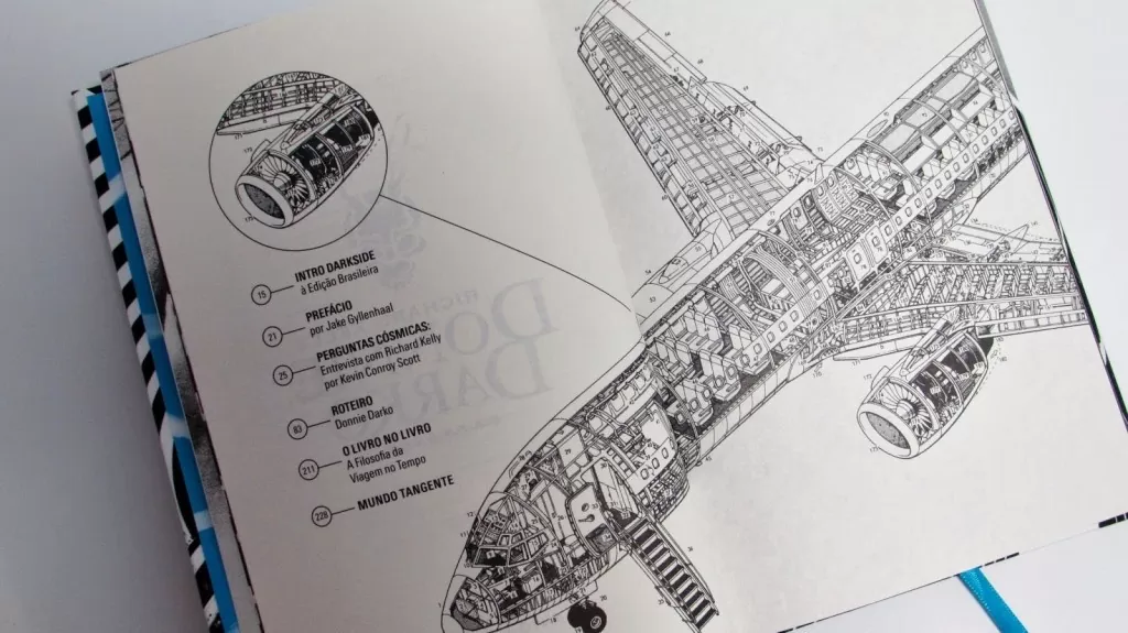 Na edição da Darkside, além de uma introdução feita pelo tradutor, temos um prefácio do ator Jake Gyllenhaal. Ele questiona a nossa cultura de passividade e a importância de questionarmos, e como o próprio personagem dele diz, “para mudar as coisas”. E antes de chegar ao roteiro original, o leitor encontra uma entrevista feita por Kevin Conroy Scott com o idealizador de tudo isso, Richard Kelly. Então, não espere que o diretor revele todas as respostas nessa entrevista. Mas é possível conhecer mais sobre ele. Desde sua infância até suas influências, como Stephen King. A trajetória e formação no cinema até as dificuldades e um pouco dos bastidores do filme.