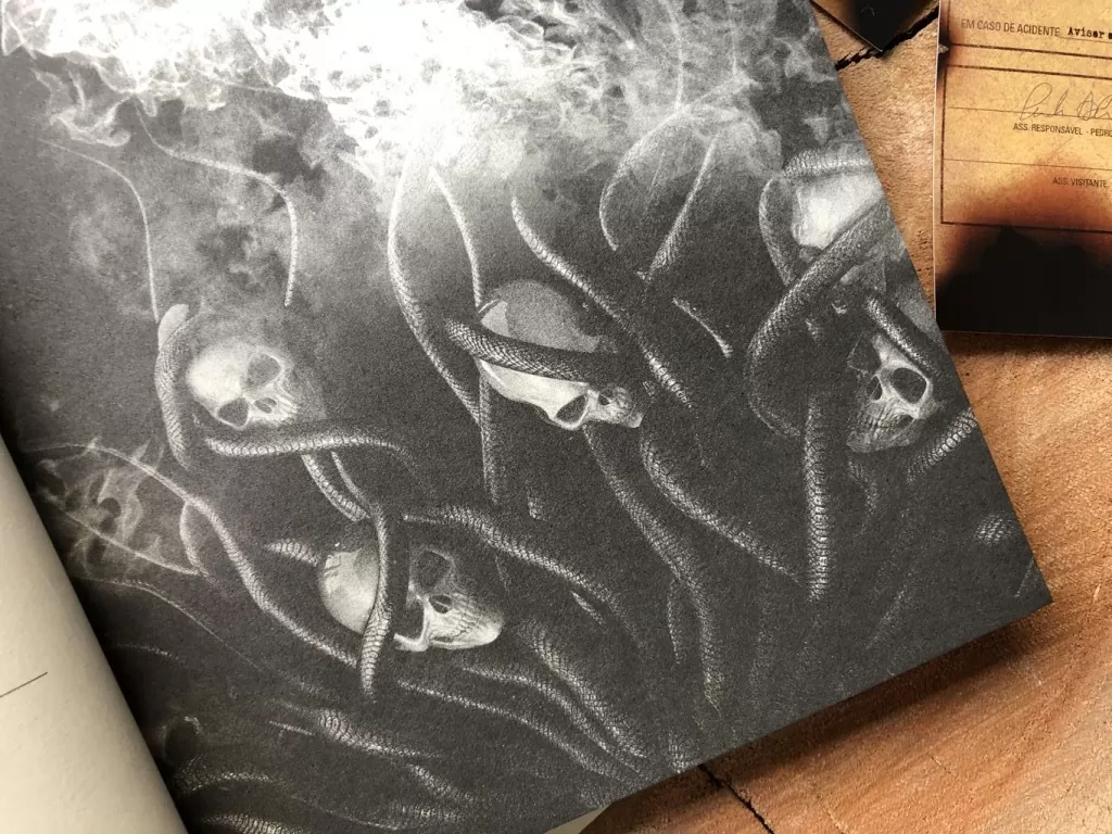 Além de ser responsável por essa construção maravilhosa de quatro histórias diferentes sobre um mesmo tema, preciso dizer que a Faro Editorial fez um trabalho incrível na edição da obra, com páginas pretas, capa que destaca o fogo e ilustrações extremamente perturbadoras, deixando a obra com um forte gosto de terror capaz de assombrar as noites de quem a lê.