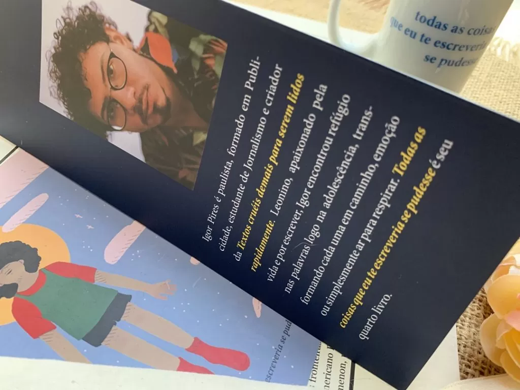 Sua história é contada por meio dos poemas, por meio da beleza das palavras e com maestria ele brinca com o vocabulário para nos fazer sorrir, para nos fazer chorar, para nos fazer suspirar. Seus poemas falam de encontros e desencontros, inícios e términos, lembranças tristes e felizes mas acima de tudo falam sobre ser verdadeiro. Sobre ser entregue. Em um mundo cada vez mais líquido, onde a conexão está escassa, Igor Pires faz uma ode aos sentimentos profundos e mergulha em si mesmo para superar o que parecia insuperável. Ele faz mágica com o texto e consegue extrair poesia mesmo da tragédia, e isso é para poucos.
