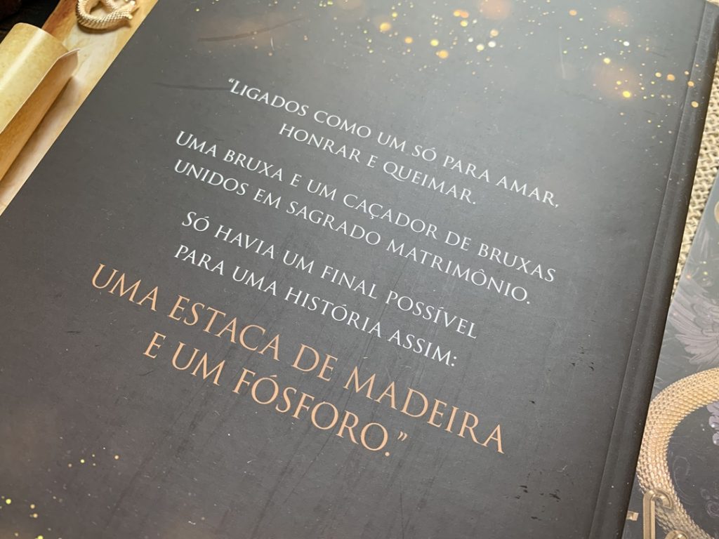 “Uma bruxa e um caçador de bruxas unidos em sagrado matrimônio. Só havia um final possível para uma história assim — uma estaca de madeira e um fósforo.”